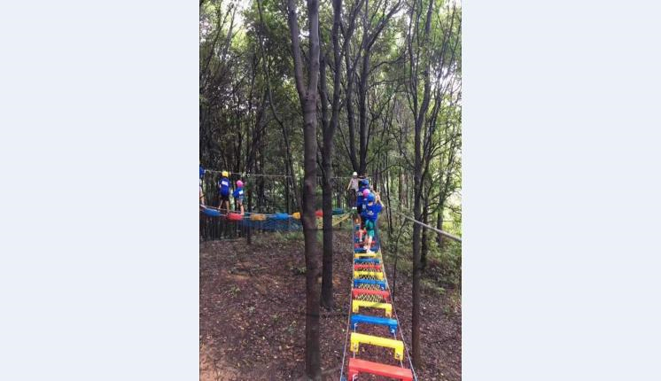 材料:攀巖繩、熱鍍鋅鋼絲繩、不銹鋼鏈接件、防腐木