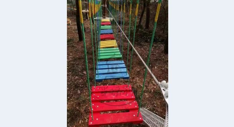 材料:攀巖繩、熱鍍鋅鋼絲繩、不銹鋼鏈接件、防腐木